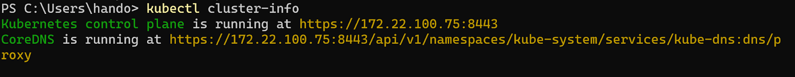 Next, make sure kubectl is working and your cluster is operational with a simple command to view the cluster information:
